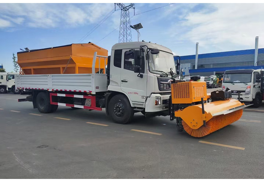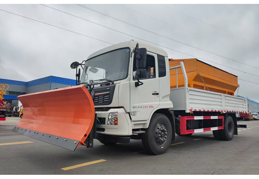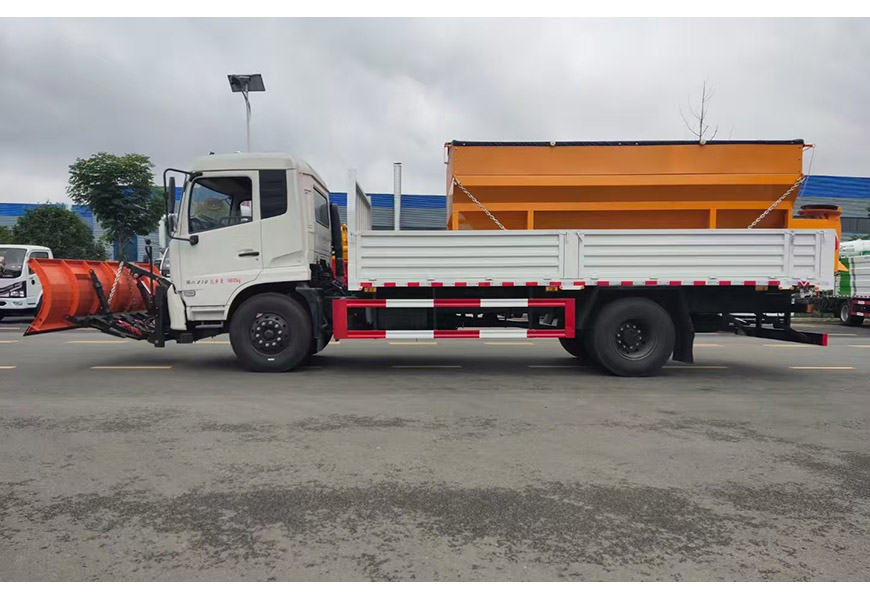 上裝配置 整體避障除雪鏟,夜間工作燈,車取力重型除雪鏟(左右雙液壓驅(qū)動)可搭配8立方或者10立方融雪撒布機(獨立柴油動力,鏈條刮板輸送,采用V型料倉,頂部帶防雨罩,折疊式不銹鋼撒布盤)3-3.5米雪鏟、3-3.5米雪鏟及撒布機均采用集成按鍵駕駛室操作。