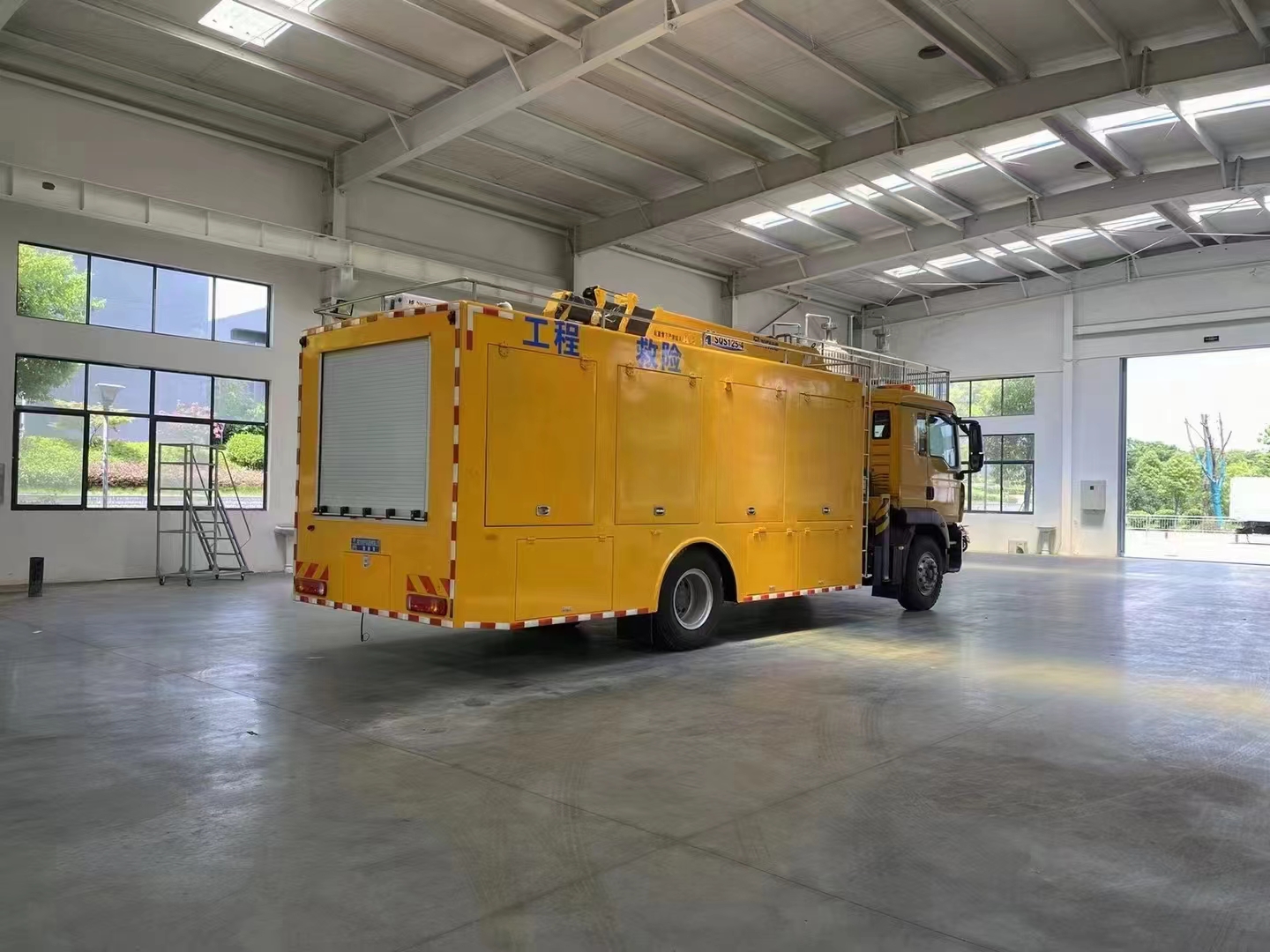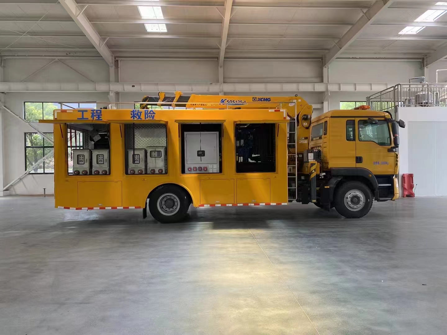 上裝配置  豪沃帶吊救險車配徐工5噸4節(jié)直臂吊機(jī),常用功率200KW發(fā)電機(jī)組,可以選配8臺500方便攜泵,。或1臺1000方自吸泵加6臺500方便攜泵,總排水量4000方/小時。安裝升降照明系統(tǒng)及液壓支撐系統(tǒng),整車智能系統(tǒng)…