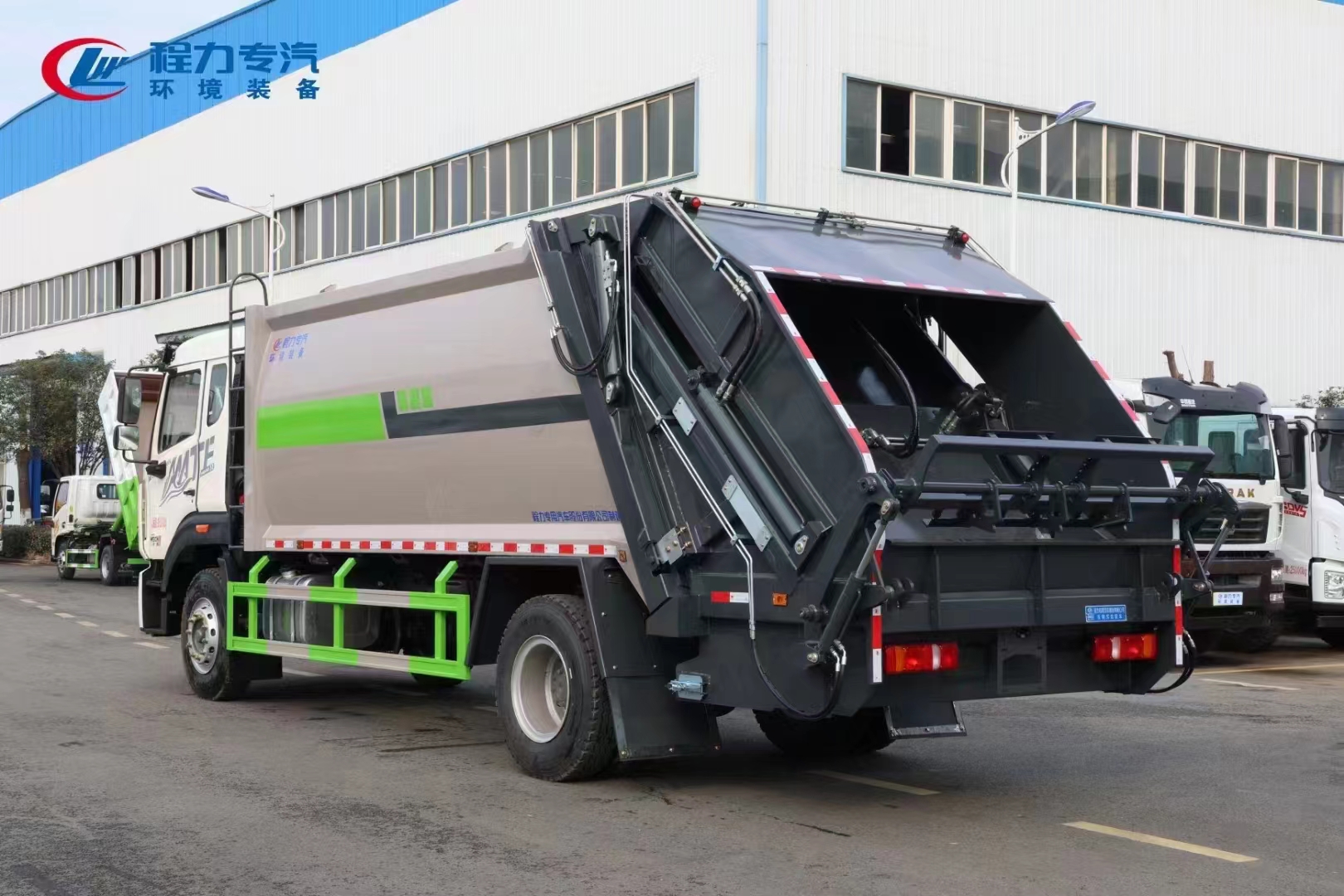 ??????湖北程力汽車:程力威牌國六重汽MATE16-18方壓縮式垃圾車產品型號及參數配置,程力威牌國六重汽MATE16-18方壓縮式垃圾車高清圖片,程力汽車系列程力威牌國六重汽MATE16-18方壓縮式垃圾車最新報價請撥打客服熱線。車輛主要配置 產品名稱: 程力威牌CLW5183ZYSBHJ壓縮式垃圾車 外形尺寸: 9570,9470,9050, 894025503300,(mm) 排放水平: 國六 貨箱尺寸: (mm) 總質量: 18000(Kg) 接近/離去角: 17/11,17/12,17/13() 額定質量: 6770,6705,7...