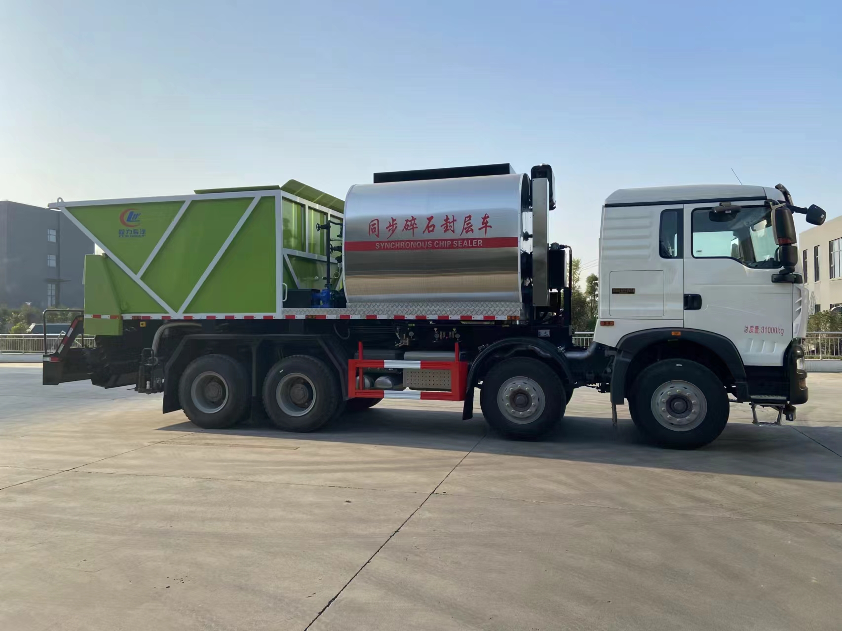 ??????湖北程力汽車:程力公路養護重汽豪沃前四后八同步封層車產品型號及參數配置,程力公路養護重汽豪沃前四后八同步封層車高清圖片,程力汽車系列程力公路養護重汽豪沃前四后八同步封層車最新報價請撥打客服熱線。車輛主要配置 產品商標 程力威牌 公告批次 371(擴展) 產品名稱 同步碎石封層車 產品型號 CLW5318TFCZ6 總質量(Kg) 31000 罐體容積(m3) 額定載質量(Kg) 12490,11870 外形尺寸(mm) 1065025003750 整備質量(K...