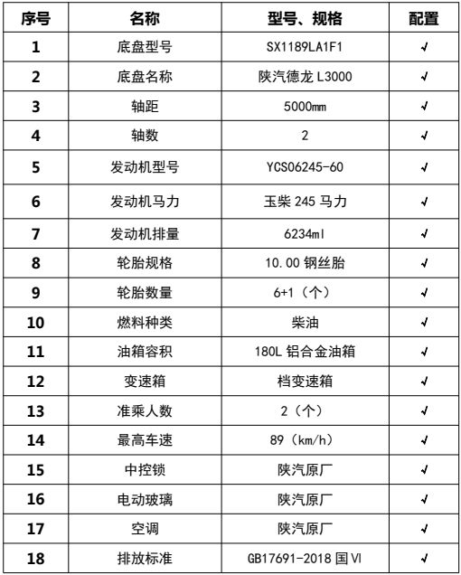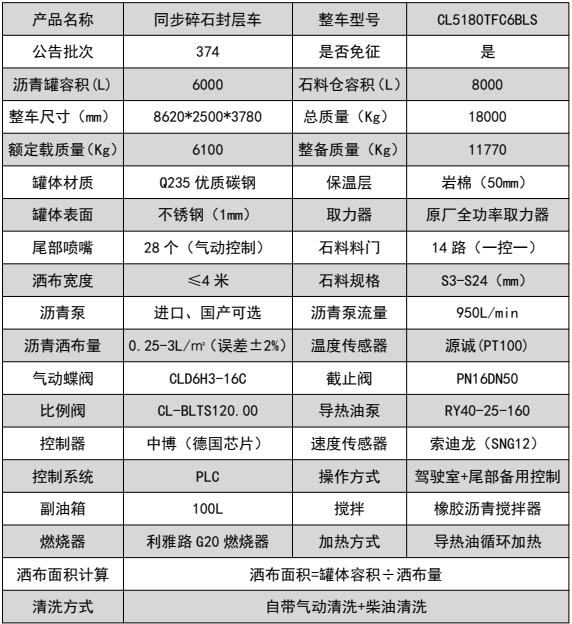 僅用軸距(mm):5000,該車為路面同步碎石封層專用車輛,主要專用裝置為瀝青罐,碎石箱及灑布系統.側防護材料:Q235,采用焊接連接,后防護為專用裝置代替,下緣離地高430mm,ABS系統生產廠家及型號分別為:西安正昌電子有限責任公司(ZQFB-V);隨底盤選裝駕駛室,后部照明燈僅在駐車狀態下使用,起夜間照明作用,行駛過程中不可點亮。