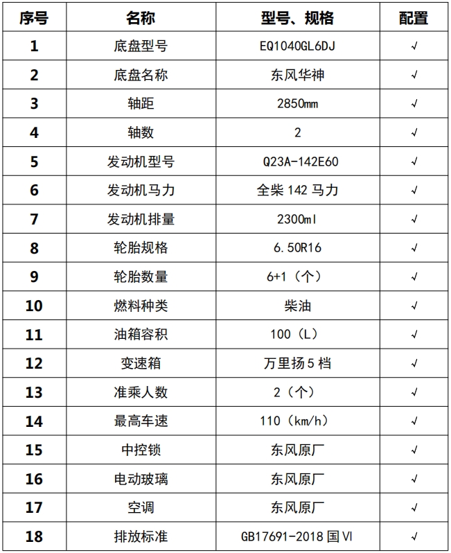 | 車(chē)輛主要配置 | |||