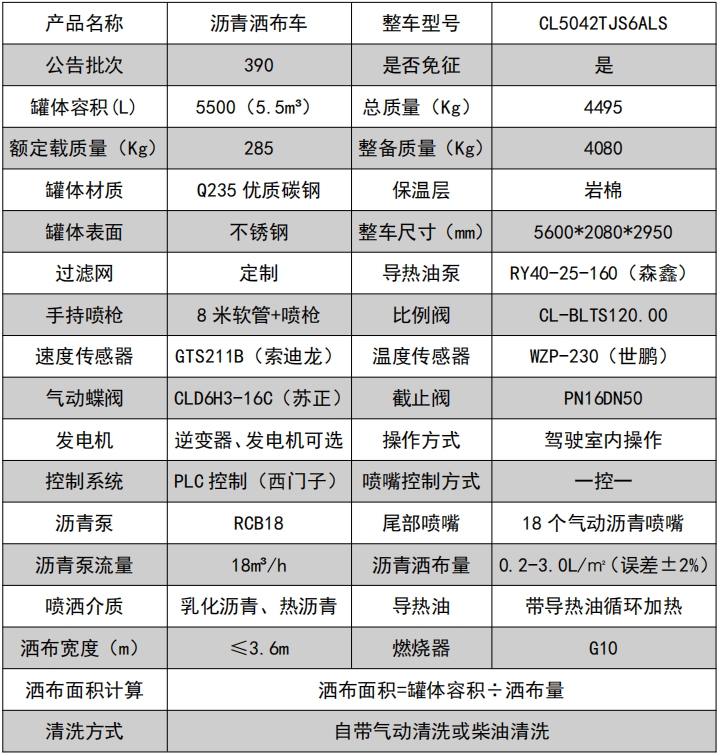??????湖北程力汽車:程力CL5042TJS6ALS福田領航 5.5 方藍牌智能瀝青灑布車產品型號及參數配置,程力CL5042TJS6ALS福田領航 5.5 方藍牌智能瀝青灑布車高清圖片,程力汽車系列程力CL5042TJS6ALS福田領航 5.5 方藍牌智能瀝青灑布車最新報價請撥打客服熱線。整車技術參數 產品商標 程力牌 公告批次 390 產品名稱 水泥凈漿灑布車 產品型號 CL5042TJS6ALS 總質量(Kg) 4495 罐體容積(m3) 額定載質量(Kg) 285,220 外形尺寸(mm) 5600 × 2080 × 2950 整備質量(Kg) 4080 貨廂...