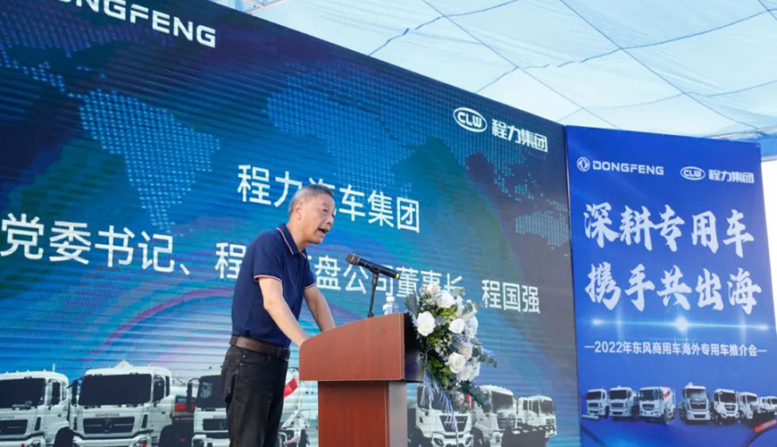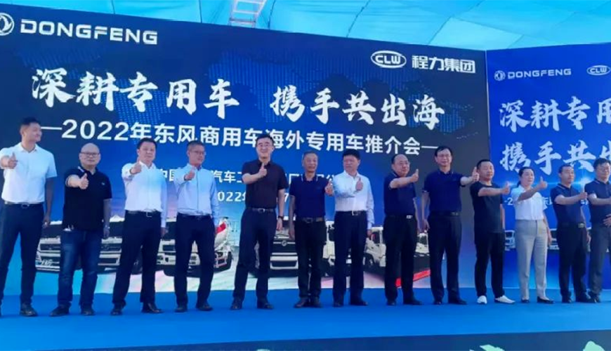 5月27日上午,陽光明媚晴空萬里,在風景如畫花園式的程力新廠底盤大樓廣場上,程力汽車集團與中國東風汽車工業進出口有限公司,聯袂舉行了一場隆重而又別開生面的“深耕專用車,攜手共出海”商用車新產品大型推薦會。