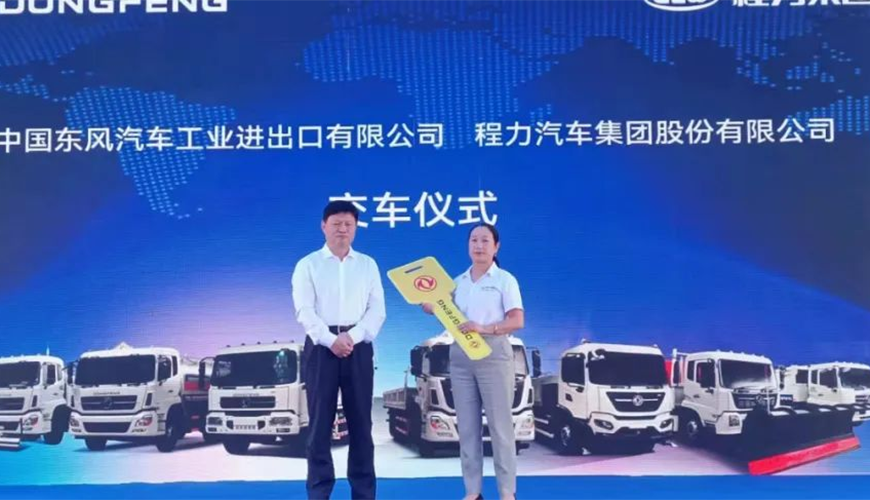 隨后,中國東風汽車工業進出口有限公司商用車海外營銷部中重型產品總監吳永剛與程力集團國際市場部業務經理陳葦舉行了交車鎖匙牌授牌儀式。