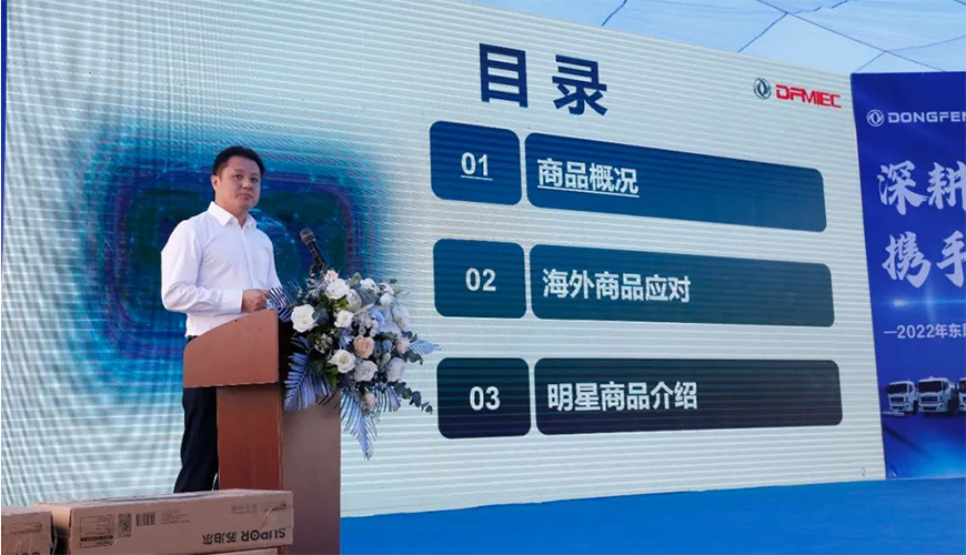 楊濤助理表示,中國東風汽車工業出口有限公司是東風汽車集團有限公司的二級單位,是一家專業從事東風集團汽車出口、全球供應鏈服務、工業投資的外貿公司。2021年東風的海外事業取得了亮眼的成績,海外出口車輛(含成套散件)15.4萬輛,同比增長了1.2倍,創造了歷史最高紀錄;2022年將沖刺挑戰20萬輛的銷售目標,借此推薦會的機遇,希望程力和隨州的銷售經理,能夠搭上東風海外事業發展的快速列車,共創新業績新輝煌。