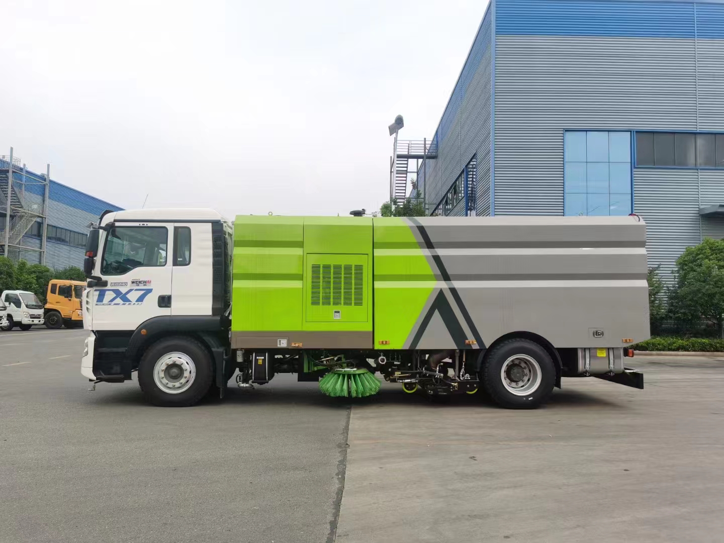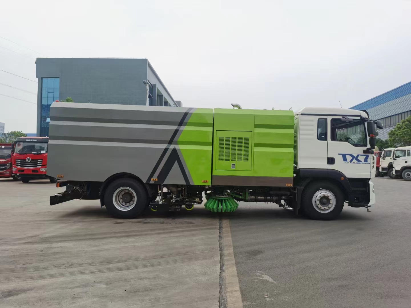 上裝配置 副發康機170馬力,廈門南超免維護自動離合器,免維護風機,海德瑞沃電磁閥組,德國進口高壓泵,萬向高壓路沿清洗,耐磨液壓油缸,西門子電控開關,左右、后噴霧壓塵系統,不銹鋼垃圾箱及碳鋼水箱電泳防銹處理,水箱容積9立方左右,垃圾箱容積7立方左右,最大清寬度3.5米,前置兩掃盤,中置吸盤,手動泵應急系統,多種語音報警尾部箭頭燈。 隨車配備低壓沖洗前沖后灑及高壓沖洗功能(前路沿沖洗/中沖/20米高壓沖洗卷盤/后噴霧/垃圾箱自潔)尾部箭頭作業燈。